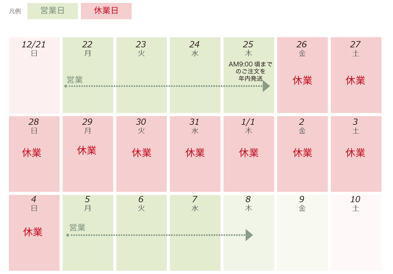 ※営業日のご案内は予告無く変更になることがあります。