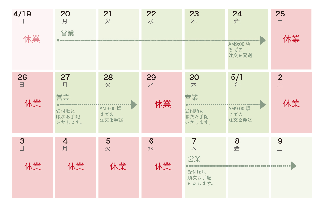 ●ゴールデンウィーク中のご注文・配送についてのお知らせ