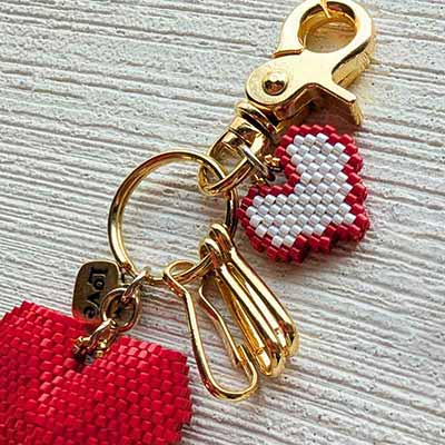 ハート小を編む際には配色に気を付け、はぎ合わせの際には2枚をしっかり合わせ、拾うビーズを間違えないよう注意してください。