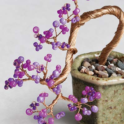 ワイヤーでつくる小さな盆栽のキット。枝や葉を自在に動かせるので、本物の盆栽のように好みの樹形に仕立てることができます。作り方は、カットしたワイヤーにビーズを通してねじるだけ。工具不要で、はさみとものさしだけあれば作ることができます。ねじることによるワイヤーの動きが、まるで本物の幹のよう。指先でつまめる小さなサイズで、ずらりと並べて飾るのもおすすめです。