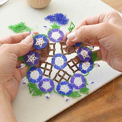 ビーズレーシングで作る♪カラフルなお花のドイリーです。下に引いても良し!、額に入れて飾っても良し!お好みでお楽しみください♪