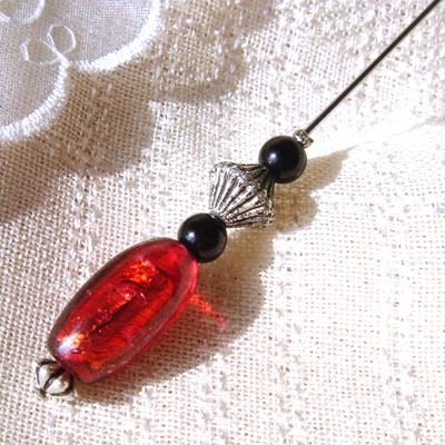- 手巻きビーズのスティックピン(赤)