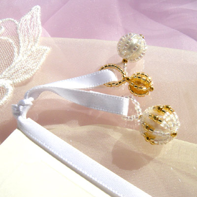 - カードを飾るビーズボール(ホワイト系)