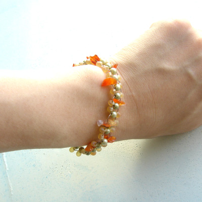 - 天然石サザレのスウィングブレスレット(オレンジ)