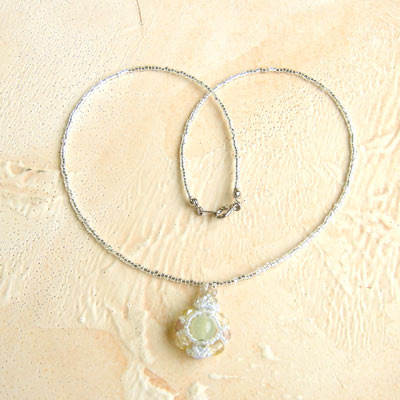 ナイロンコートワイヤーを45cmに切り、図のようにデリカビーズとトップモチーフを通し 金具をつけて出来上がり。
