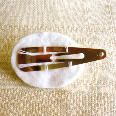 ファッションパーツに沿ってフェルトを切り、画像を参考にしてフェルトにヘアピンを