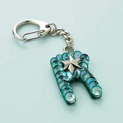 スパンコールで出来たアルファベットパーツを使用したキーチェーンのご紹介です。切ったり・貼ったりと、簡単な作業で出来ちゃうので、ご家族・友人のイニシャルも作りたくなっちゃいますよ☆