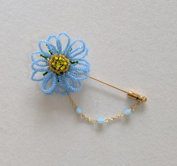 【とても良かった】爽やかな水色の存在感のあるデージーのブローチ
