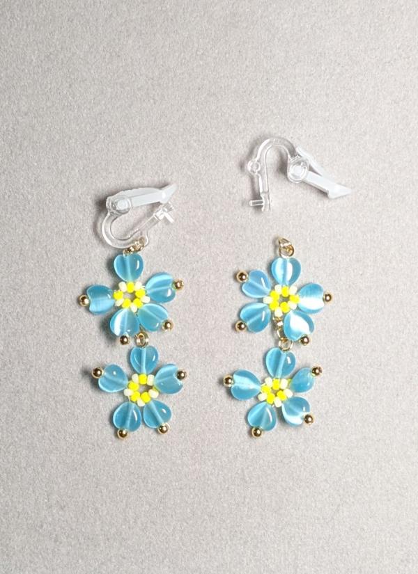 キャッツアイビーズで作る 勿忘草のピアスへのレビューです- 【別のデザインも作りたい】キャッツアイビーズが美しい勿忘草イヤリング