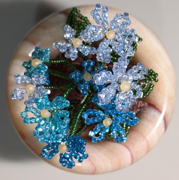 ピコフラワーキット No.86へのレビューです- 【とても良かった】水色系TR300で作ったビーズフラワー
