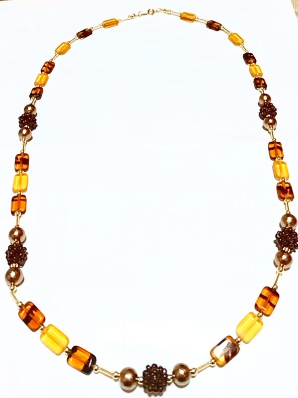 レクタングルビーズの冬カラーのロングネックレスへのレビューです- 【色違いも見てみたい】あえて秋色で…