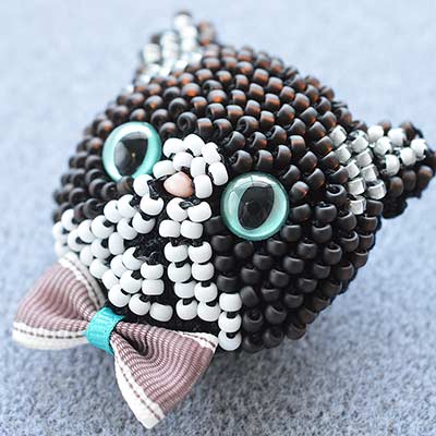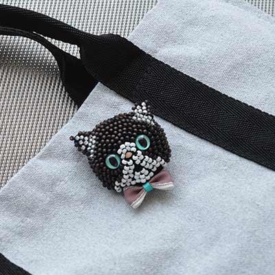 - ビーズ編みの猫ブローチキット(黒ハチワレ)